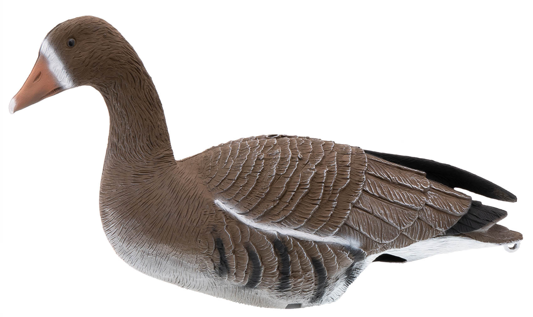 Подсадные чучалки гусей широко и успешно применяются для имитации кормящейся либо отдыхающей гусиной стаи. Окрас гусиного чучела выполнен матовыми (антибликовыми) густотертыми красками. Краски не выгорают на солнце. Муляж сделан с полным соблюдением пропорций и окраса натуральных гусей.